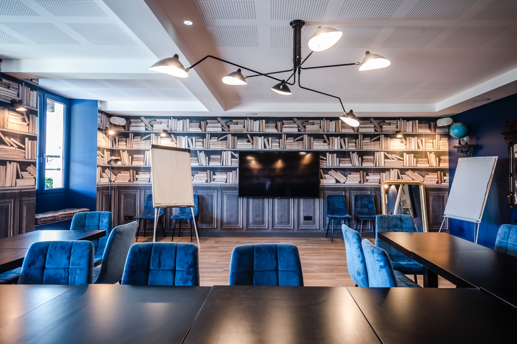 Entièrement rénovée en 2021, notre salle de séminaire, d’une capacité de 40 personnes, est équipée de matériel technologique de dernière génération…wifi, écran plat, photocopieuse …